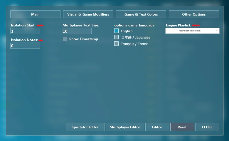 Rate: Altering this setting will change the speed at which the song is played, either speeding it up, or slowing it down. You can play songs on a higher rate for a greater challenge, or on a lower rate to make it easier (or to understand certain patterns within a file). Rates accept decimals, and generally you'll play files within the 0.XX - 1.XX range.